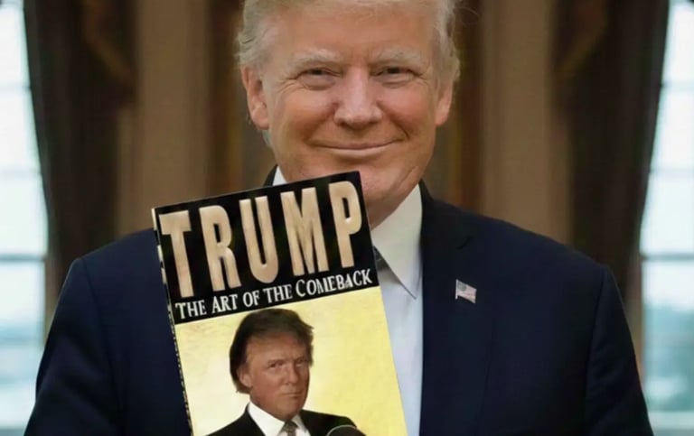 En The Art of the Comeback, Donald Trump construye una narrativa de caída y resurgimiento. Se presenta como un empresario que, tras enfrentar una crisis financiera severa a inicios de los años noventa, logra reorganizar sus deudas, recuperar el control de sus activos y reconstruir su fortuna. El tono es el de una recuperación estratégica: reconoce errores, enfatiza su capacidad de negociación con los bancos y proyecta la imagen de un líder resiliente que anticipa tendencias y actúa con determinación. Aunque en el libro admite haber recibido apoyo financiero de su padre, Fred Trump, no aborda en detalle la magnitud de las transferencias patrimoniales familiares ni posibles estrategias fiscales asociadas a ellas, reforzando así la imagen del “multimillonario hecho a sí mismo”, particularmente en el contexto de la crisis inmobiliaria de los años noventa.